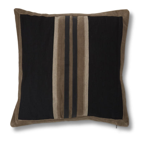 20 Inch Square Black Linen Cotton Velvet & Vegan Leather Pillow