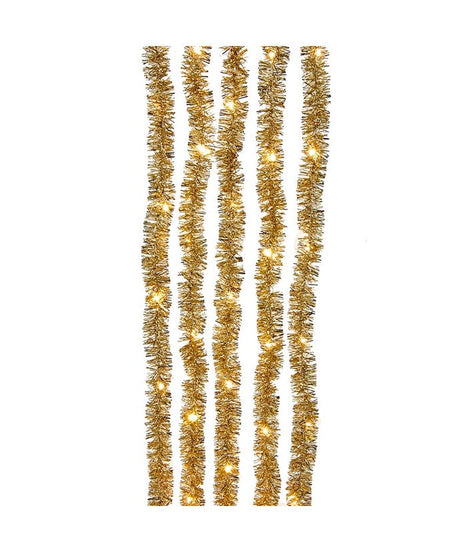 6.5'100L Champagne Iridescent Tinsel with Warm White Superbright LED Light