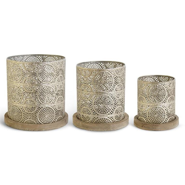 A stunning candle holder that pairs perfectly with our flamewaves for a cozy glow through the intricate punched pattern.