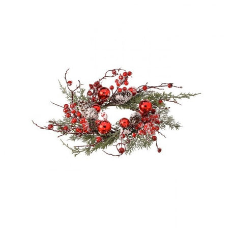12" Frosted Mix Green + Berry + Cone Candle Ring