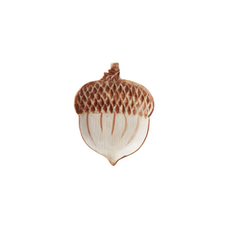 Hand Painted Stoneware Acorn Shaped Dish -Brown-Cream Color