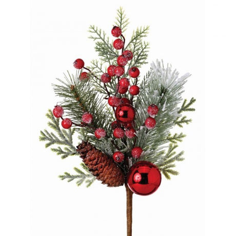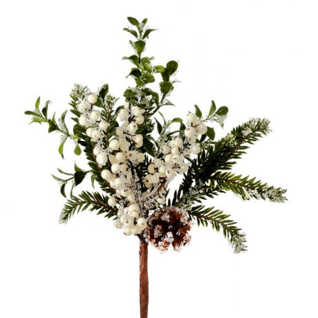 14" Iced Boxwood Berry + Fir Pick