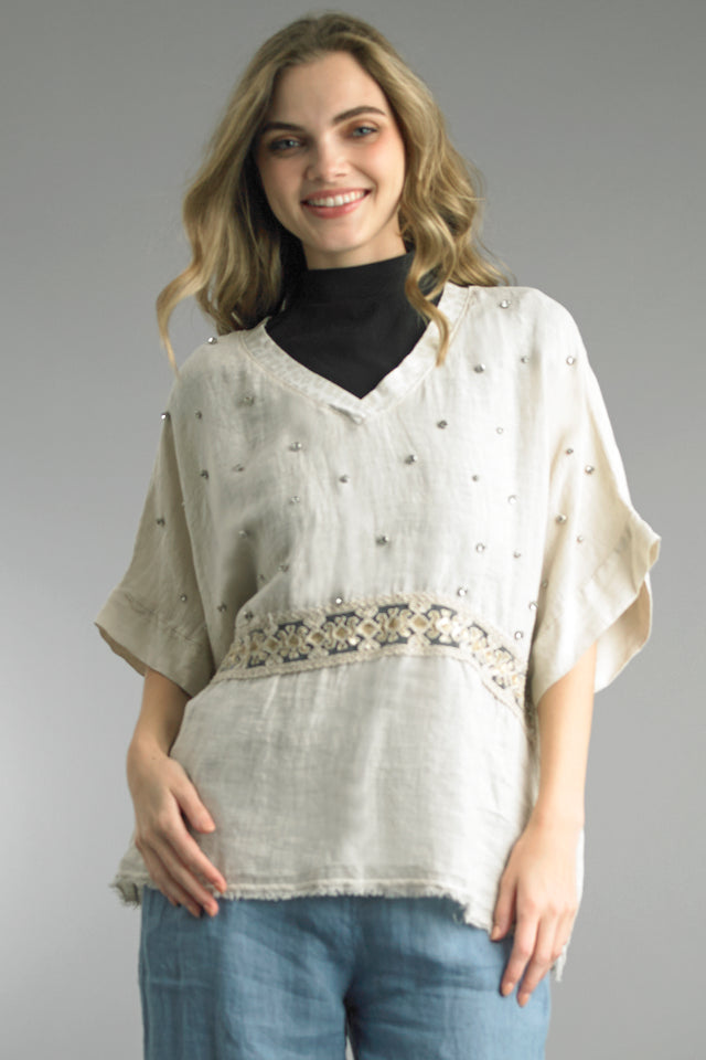STUDDED WAIST TOP - WHIT / S/M is backordered and will ship as soon as it is back in stock.