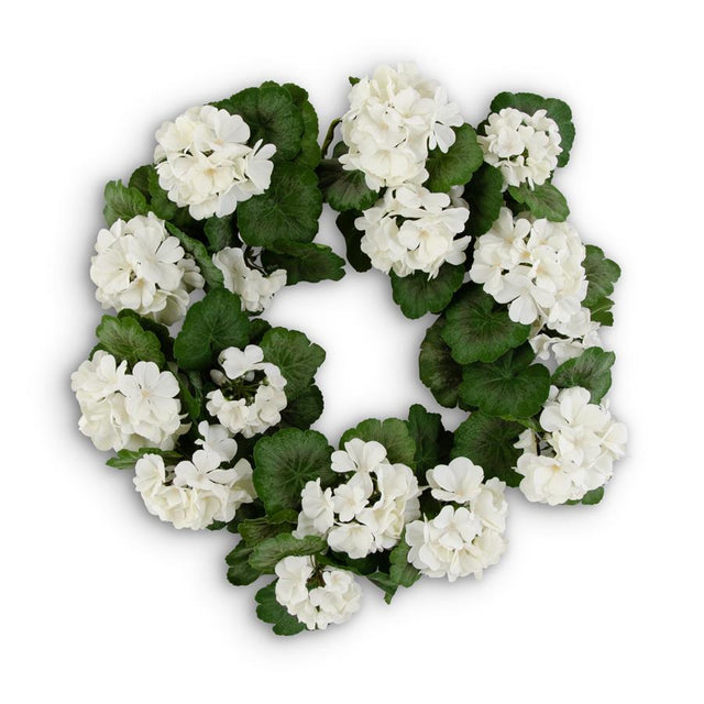 24 Inch White Geranium Wreath is backordered and will ship as soon as it is back in stock.
