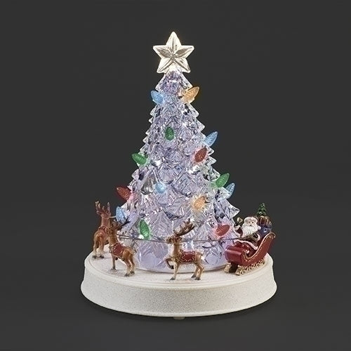 #E -12"H LIGHTED MUSICAL TREE WITH SANTA AND REINDEER ROTATION -USB ADAPTOR
