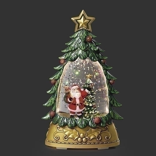 6"H LIGHTED SANTA & TREESHIMMERING MERRY LITES