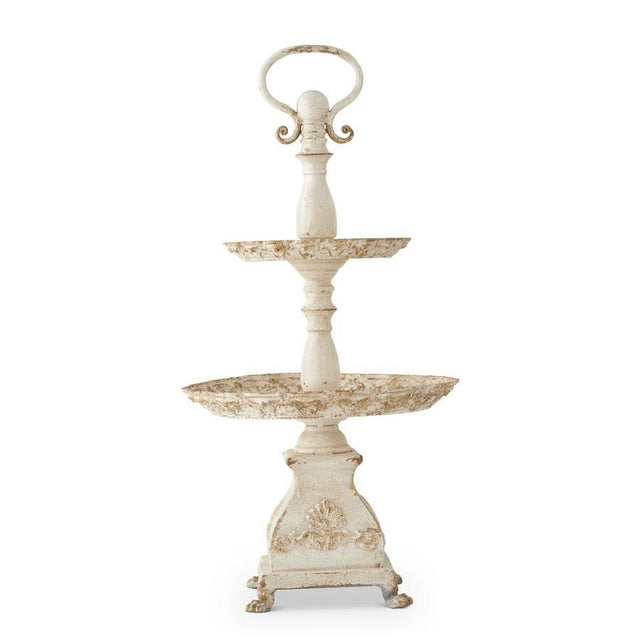 36.5 Inch White and Gold Washed Metal 2 Tiered Table