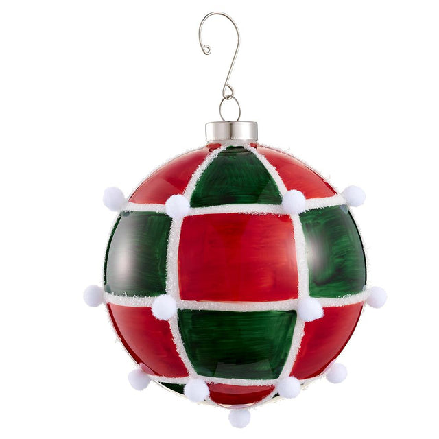 4.75" Snowed Pompom Glass Ball Ornament