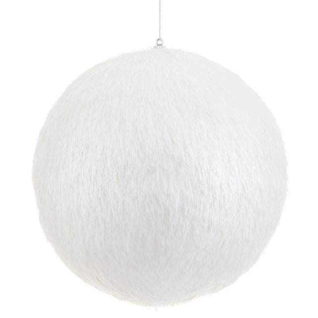 8" Tinsel Ball Ornament - White is backordered and will ship as soon as it is back in stock.